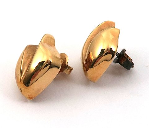 Par ørestikker af forgyldt sterling sølv med bladformet front 18 x 14 mm. Vægt ca. 2 gr. Den ene mekanik er ikke stemplet 925.