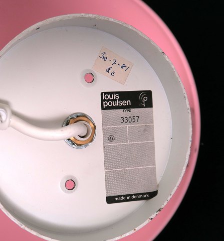 Poul Henningsen, PH-Hat væglampe af hvidlakeret metal, skærm indvendig med rosa lakering som giver et varmt lys. Diameter 30 cm. Fremstillet hos Louis Poulsen, type nr. 33057