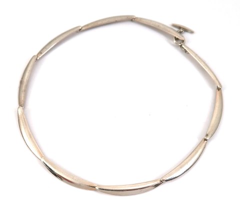 Halssmykke af sterling sølv med aflange, buede led. L. 38 cm. Fremstillet hos TSR Skat Rørdam. Vægt ca. 20 gr.