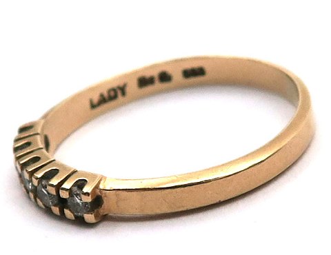 Ring af 14 kt. guld, prydet med 5 diamanter på række, tilsammen ca. 0,025 ct. Ring Str. 53½, samlet vægt ca. 2 gr.