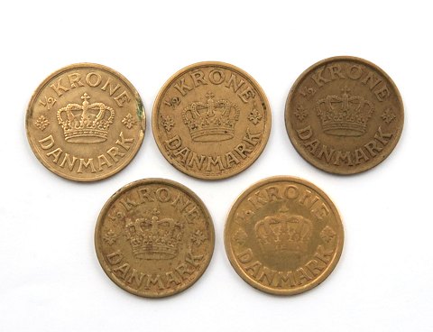 Christian X, ½ kr. 1924, -25, -26, -39, -40. H 22A, H 22B (5)