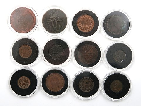 Præsentationskasse med 24 danske skillings- og øremønter 1677 ~ 1907. (24)