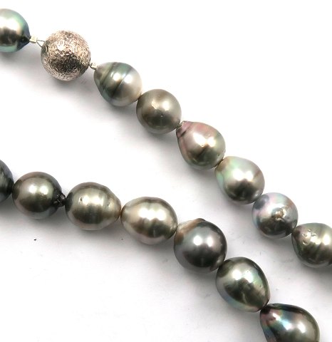 Collier, betrykket med delvist dråbeformede southsea perler i forløb. Kuglelås af sterling sølv med struktureret overflade, fremstillet hos J. Aagaard. Collier L. 42 cm.