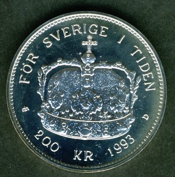 Sverige, 200 kr STERLINGSILVER 1993 UNC - Carl XVI Gustavīs 20th anniversary of reign