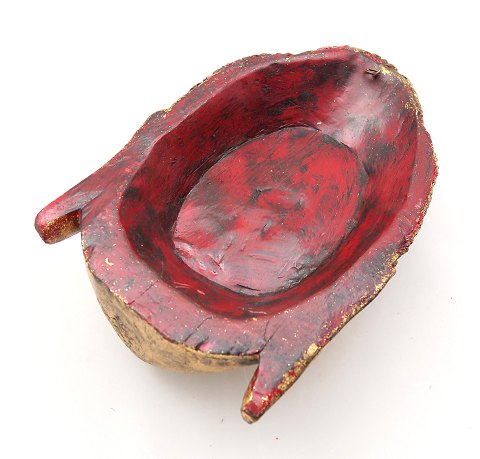 Zen Buddha maske, bemalet med guldbronze og pandebånd, dekoreret med spejlrondeller og farvede sten. H. 29 cm.
