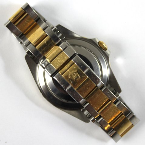 Herrearmbåndsur fra Rolex, model GMT-Master II, ref.nr.: 16713, i kasse og med oysterlænke af guld og stål, sort skive med punkt- og stregindeks, datoangivelse ved 3" positionen, safirglas, automatisk urværk. Urkasse 40 mm. i diameter.