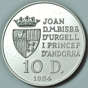 Andorra, 10 diners SØLV 1994 Proof - KM 98