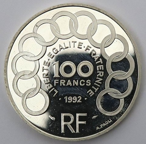 Frankrig, 100 Francs(15 ecu), 1992, sølv
