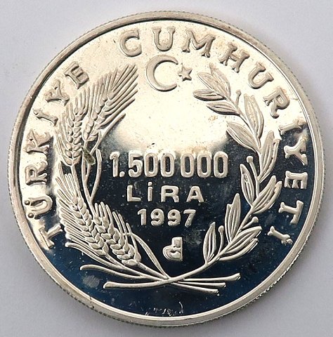 Tyrkiet, 1500000 Lira, 1997, sølv, 31,33 gr., .925, KM #1082