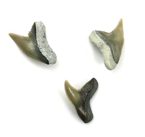 Fossile tænder fra Tigerhaj (Caleocerdo sp.), 10 - 12 mio. år gamle