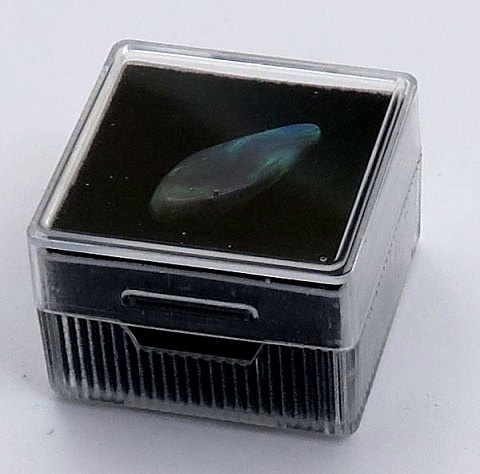 Slebet og poleret Crystal Solid opal fra Lightning Ridge i Australien, 6 x 17 mm. vægt ca. 0,5 gr. (ca. 2,5 ct.) Opbevaringsæske medfølger.