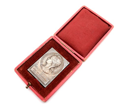 Plaquette for udmærkelse inden for kunstens verden, uddelt af ministeriet for bedre kunst. 19. årh. Originalt opbevaringsetui medfølger.