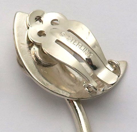 Wilhelm Freddie, par øreclips af sterling sølv til serien *Kunstnersmykke 1991*, prydet med 4½ mm. kulturperle.