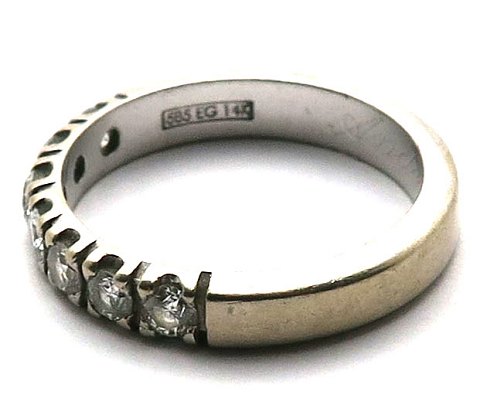 Ring af 14 kt. hvidguld, prydet med 7 brillantslebne diamanter på tilsammen ca. 0,40 ct. Ring Str. 53, samlet vægt ca. 4 gr.