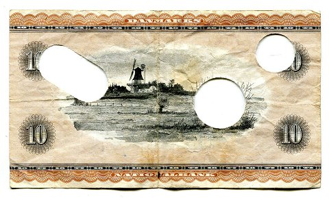 Danmark, 10 kr. makuleret af Nationalbanken *Portræt og Landskab*