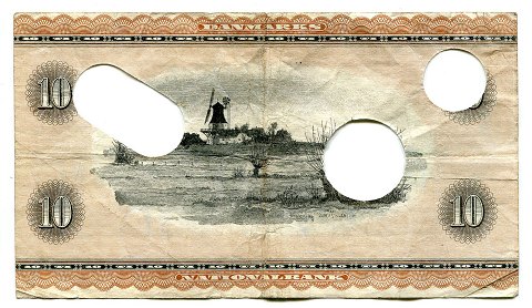 Danmark, 10 kr. makuleret af Nationalbanken *Portræt og Landskab*