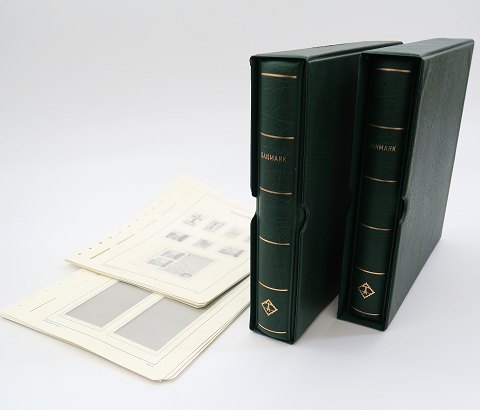 To Leuchtturm med fortrykte blade og klemlommer. Ref. No. 41. Danmark 1851 – 1989 og 1990 - 2001 samt ekstra løse blade fra perioden 2004 – 2008.