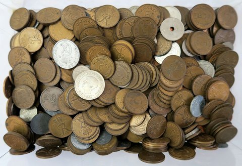 Danmark, 2 ære, 5 øre, 10 øre, 25 øre m.v. usorteret, ca. 2,5 kg.