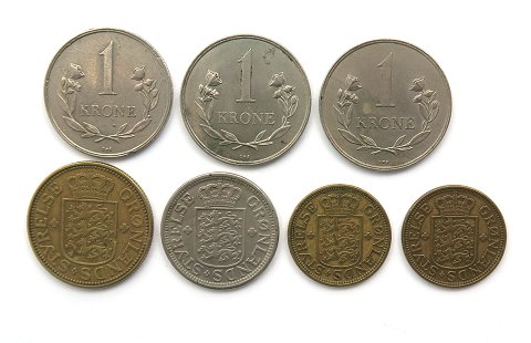 Grønland, 1 kr. 1926 og 3x 1964, 50 øre 2x 1926 og 25 øre 1926. (7)