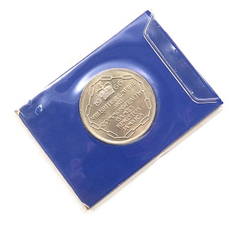 Præget i anledning af det VIII. Commonwealth Games, der blev afholdt i Kingston på Jamaica fra d. 4. til d. 13. august 1966.