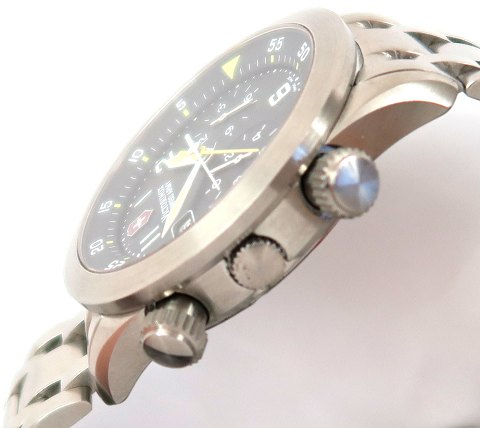 Victorinox Swiss Army chronograph herrearmbåndsur, ref. nr. V25043 i urkasse og med lænke af stål. Mekanisk lynette via kronen, sort skive bag safirglas med arabertal, central sekundviser, datovisning i #10 position samt chronograph funktioner. Quartzværk. Urkasse diameter 44 mm.