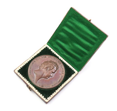 Christian VIII, medalje af bronze, revers Minerva og genius MDCCC XLII (1842). Diameter 44 mm.