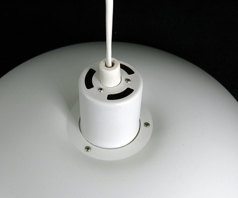Poul Henningsen PH 4 pendel med skærme af hvidlakeret aluminium, hvid stofledning. Formgivet omkring 1958 og fremstillet hos Louis Poulsen. Diam. 40 cm.
