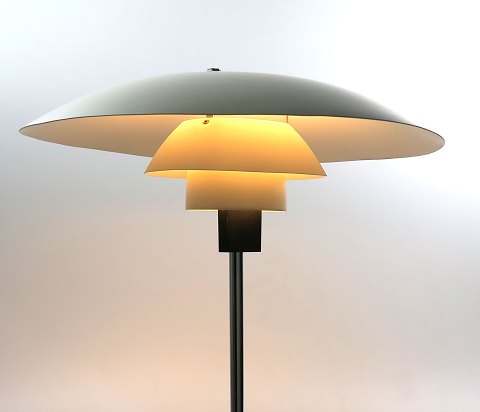Poul Henningsen (1894-1967) bordlampe med skærme af hvidlakeret aluminium, stel og fod af højglansforkromet messing og stål, afbryder i foden.