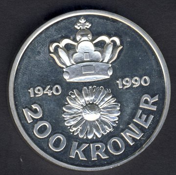 200 kr SØLV 1990 Proof - Margrethe II 50 års fødselsdag - KM 872