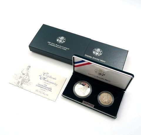 USA - Proof møntsæt med Dollar 1995 sølv og 1995 Half Dollar cn. Præget til erindring om slagene under den amerikanske borgerkrig. Dollar sølvvægt 26,730 gr. (.900).