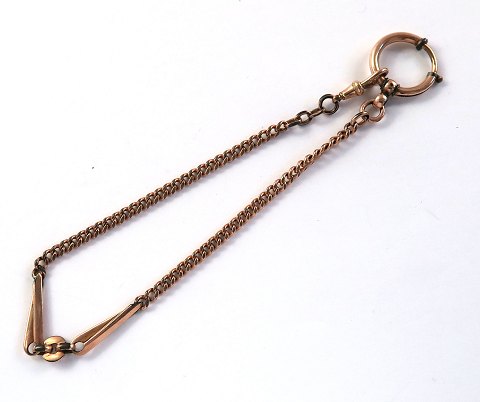 Lommeurskæde af gulddoublé med panserled, hvorimellem aflange pynteled med ring. L. 28 cm.