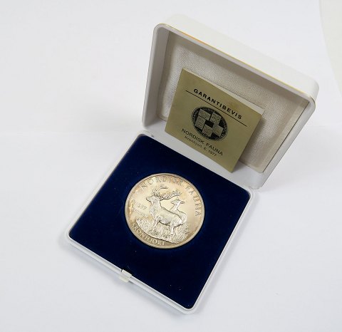 Nordisk Fauna, 1977, sølv, 45,4 gr., .925, Kronhjort, tilhørende æske og certifikat