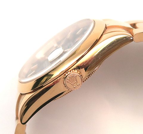 Rolex Day Date herrearmbåndsur, ref. nr. 118205 i urkasse og med Oyster lænke af 18 kt. roséguld. Sort skive med stregindikation, central sekundviser, Dag og datovisning i henholdsvis #12 og #3 position. Automatisk værk. Urkasse diameter 36 mm. NYPRIS idag 211.100,-