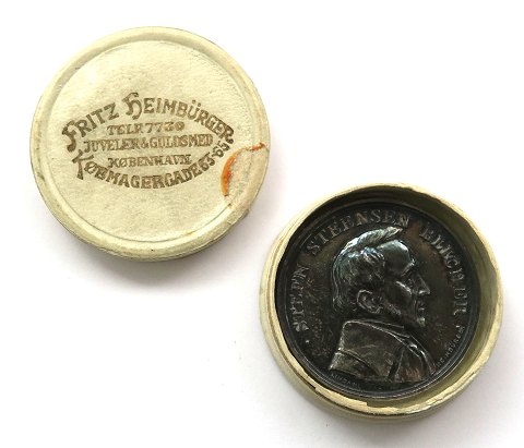 Medalje af sølv, udgivet af Jydsk Forening København i anledning af Foreningens 50 års jubilæum i 1929 med portræt af Steen Steensen Blicher. Diameter 32 mm., vægt ca. 18 gr. Opbevaringsæske fra Heimbürger - Kjøbenhavn medfølger.