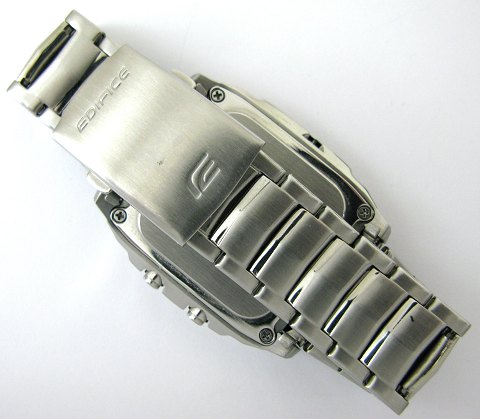 Casio herrearmbåndsur, ref. nr. EFA-130 i rektangulær urkasse og med lænke af stål. Sort skive med stregindikation. Digital sekundvisning og chronograph funktioner. Quartsværk, urkasse 38 x 38 mm. Nypris ca. 1500,-