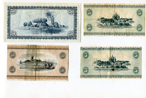 Danmark, 1 kr., 5 kr., 10 kr. sedler 1916 ~ 1970 (8)