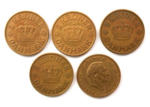 Christian X / Frederik IX, 2 kr. 1924,- 38,- 39,- 41, -59. (5)