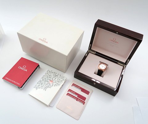 Omega yderboks, opbevaringskasse, følgepapirer og certifikat fra 10/2014 medfølger. Uret fremstår yderst velholdt med fejlfri funktion ved ebuy.dk katalogiseringstidspunktet. ebuy.dk garanterer ikke for funktionaliteten.