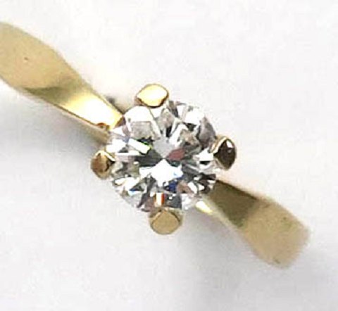 Ring af 14 kt. guld, prydet med brillantsleben diamant på 0,49 ct. med pæn, god brillans. Ring Str. 48½, samlet vægt ca. 2,5 gr.