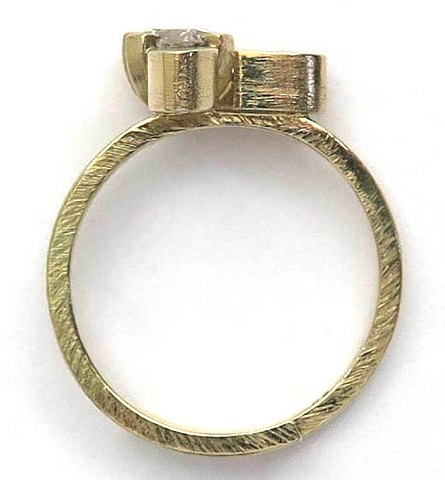 Ring af 14 kt. børstet guld med cross-over skinne og insektformet front, prydet med brillantsleben diamant på ca. 0,60 ct. Ring Str. 58, samlet vægt ca. 5,2 gr.