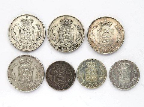 Christian IX / Christian X, 2 kr. og 1 kr. sølv (7)