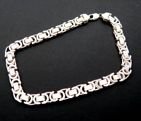 Flad, massiv kongekæde af sterling sølv, L. 44 cm. Led B. 12,5 mm., H. 5 mm. Vægt ca. 113,5 gr.
