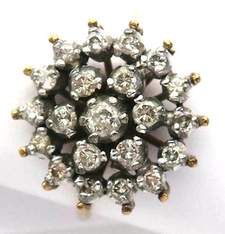 Rosetring af antagelig 1 kt. guld, besat med større og mindre brillantslebne diamanter, tilsammen ca. 1,0 ct. Ring Str. 50½. Samlet vægt ca. 5 gr.