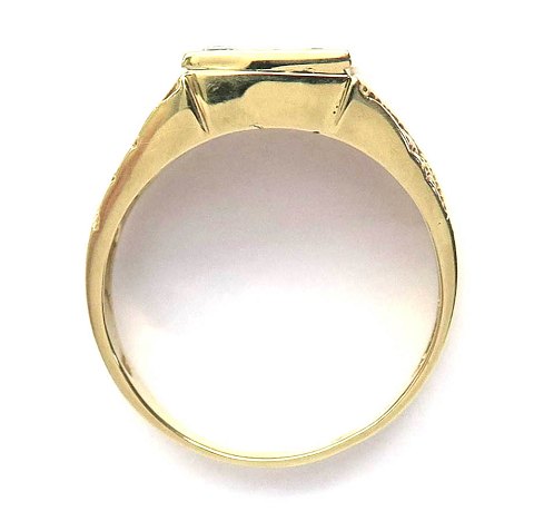 Ring af 14 kt. guld med dekoreret skinne, prydet med 9 brillantslebne diamanter på tilsammen ca. 0,50 ct. Ring Str. 62½, samlet vægt ca. 7 gr.