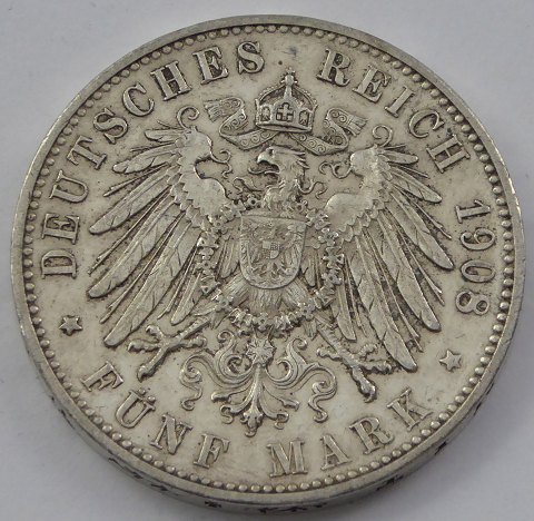 Württemberg, 5 Mark 1908 F, Wilhelm II
