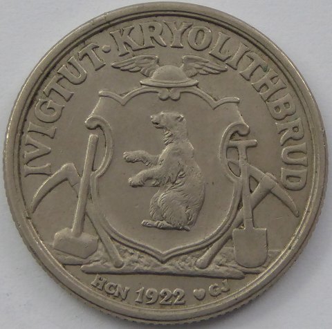 Præget på den Kgl. Mønt i København og anvendt i Ivigtut Kryolithbrud indtil inddragelsen i 1957. Derefter blev der anvendt officielle mønter.