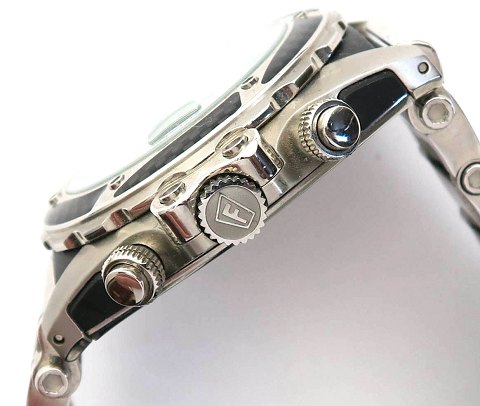 Festina chronograph herrearmbåndsur, ref. nr. 16273 i urkasse og med lænke af stål. Metallic grå skive med separat sekundviser, stregindikation, dag/datovisning i #1-3 positionen og chronograph funktioner. Quartzværk, urkasse diameter 45 mm.