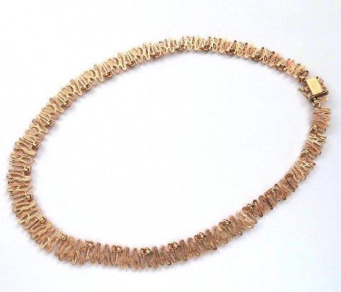 Collier af 14 kt. guld med led i forløb i en udsøgt, håndværksmæssig kvalitet. L. ca. 41 cm., vægt ca. 34 gr.