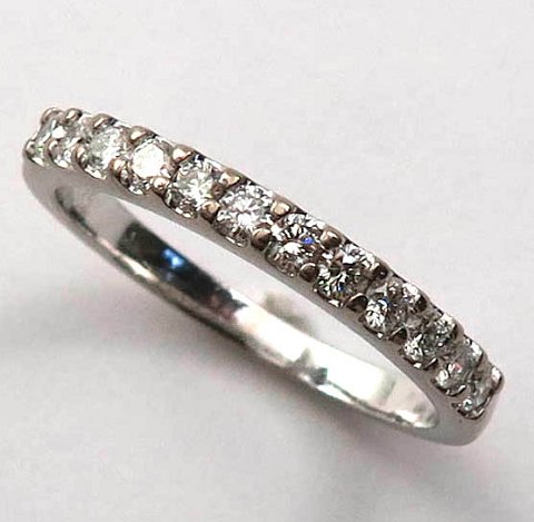 Ring af 14 kt. hvidguld, prydet med 12 brillantslebne diamanter på tilsammen ca. 0,70 ct., vægt ca. 3 gr.