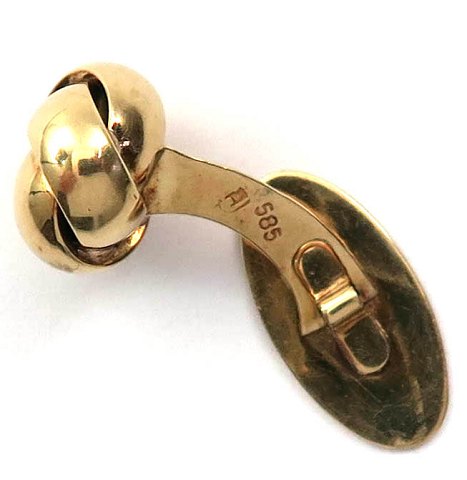 Par manchetknapper af 14 kt. guld, front i form af knude, diameter 12 mm., vægt ca. 4,5 gr.
